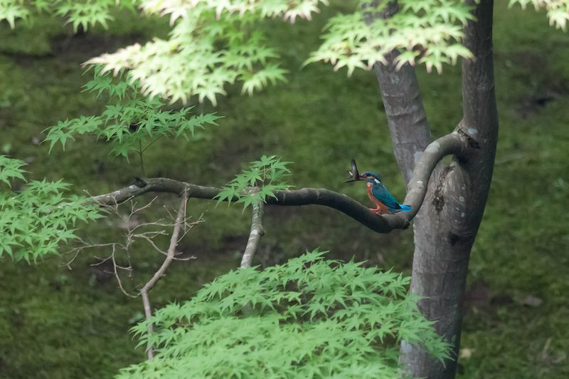 12.07.08 いつもの公園 ・カワセミ ・カワセミ ・オシドリ ハスとカワセミの組み合わせが狙える季節になりました。花数は例年よりすくないものの、すでに思い通りに写した方がいらっしゃるとか。私も少しの間待ってみましたが、大きな魚をくわえたカワセミは、ハスにはきませんでした。 オシドリは、まだ親が一緒でしたが、大きくなっていました。 |