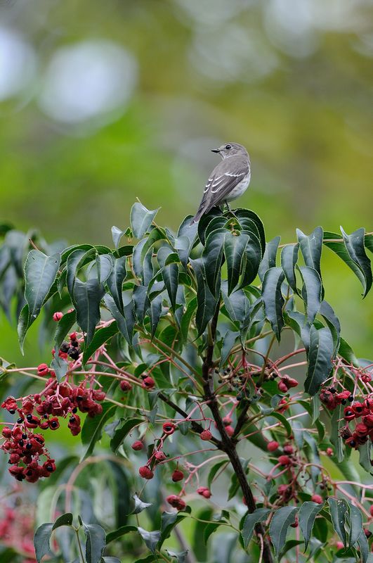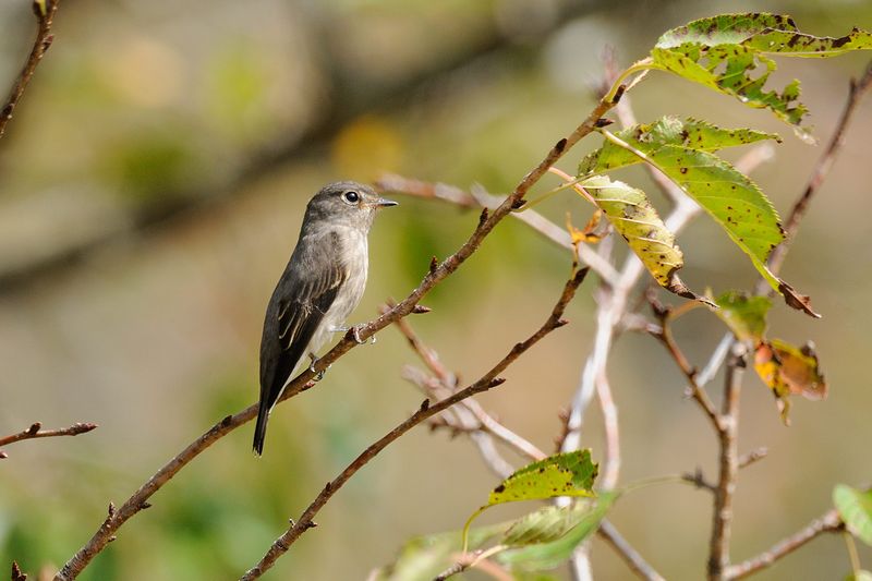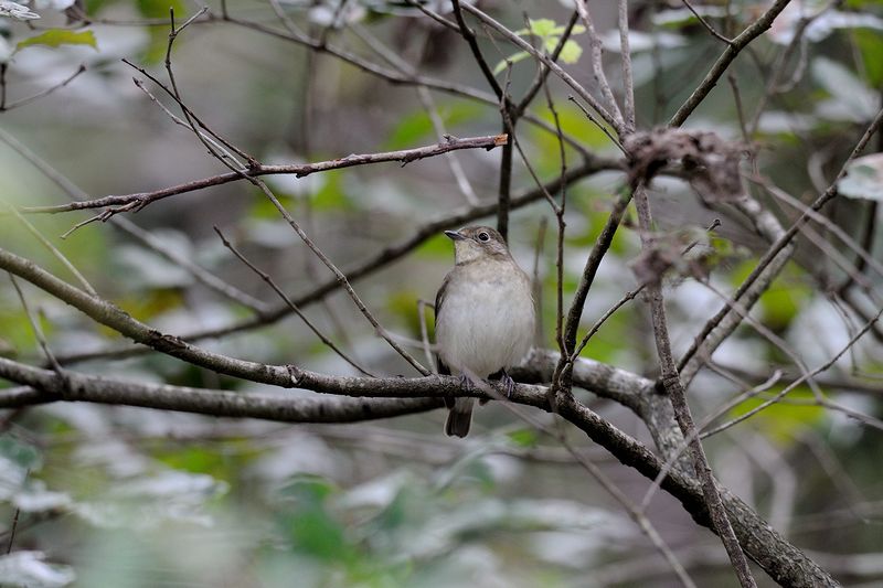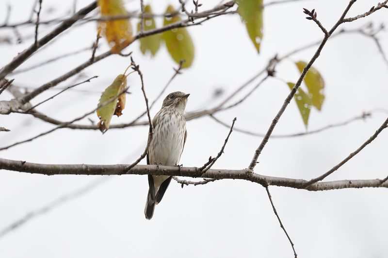 12.10.08 千葉県 ・サメビタキ ・サメビタキ ・エゾビタキ ・エゾビタキ ・キビタキ 飛んできたのはサメビタキでした。初め、少し高い枝にとまっていましたが、枝から飛び上がると下の方の枝にとまりました。近くで写していた方によると、低いところで昆虫をとっていたとのことでしたので、そのために低い枝にとまったのかもしれません。 エゾビタキが、ゴンズイの木にとまりました。赤い実との組み合わせがよいと思ったので慌てて写しましたが、この実を食べるわけではなく、すぐに飛び去っていきました。 |