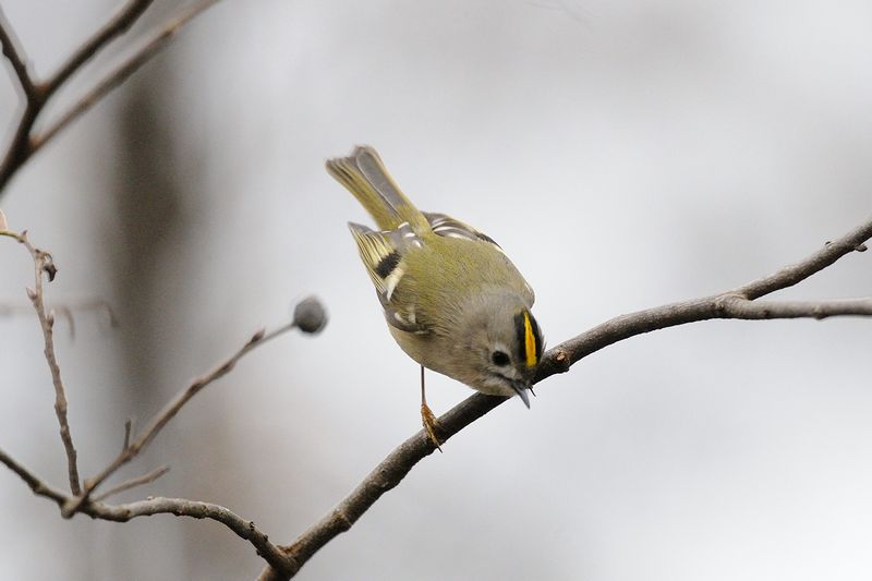 12.12.23 近所の公園 ・キクイタダキ ・キクイタダキ ・キクイタダキ ・コゲラ 近くのこの公園はウォーキングやランニングをする人は多いのですが、バードウォッチャーの姿を見かけることはまれです。この日も、キクイタダキを見ていたのは私一人でした。2羽のキクイタダキを近くで見ましたが、小さな体で本当によく動き回ります。写真に撮るには手こずります。 コゲラも近くの枝に止まりました。後頭部に赤色が見えているので雄でしょう。 |