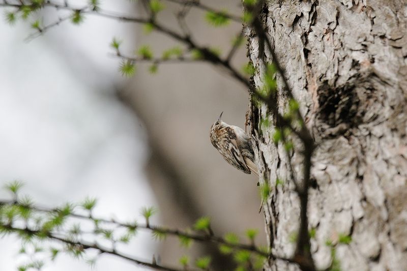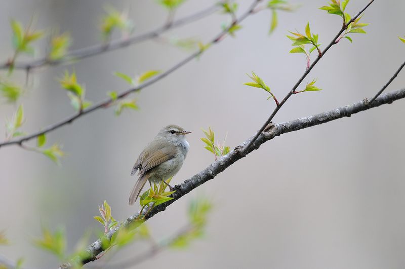 ・カケス ・キバシリ ・アカゲラ ・ゴジュウカラ ・ウグイス キバシリは2羽が近づいて、親が子に餌をあげているように見えましたが、本当はどうだったのでしょう。 宿に引き上げようかと思う時間、ウグイスの大きな囀りが聞こえ、目の前の枝に止まっているのを発見しました。こんなにじっくりと見たのは初めてかな。 |