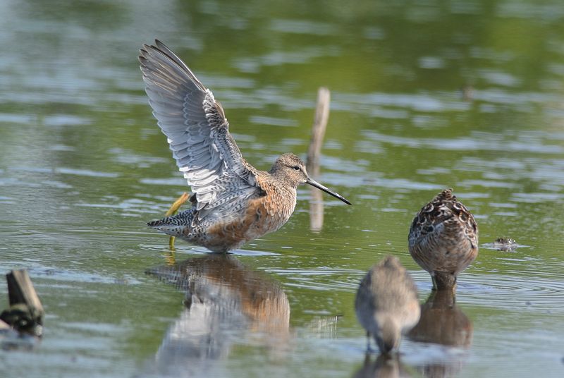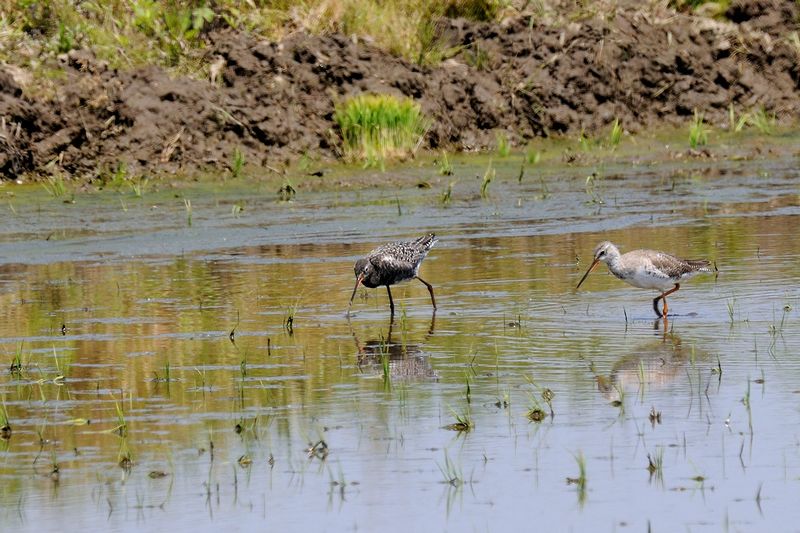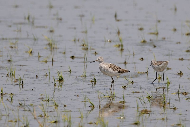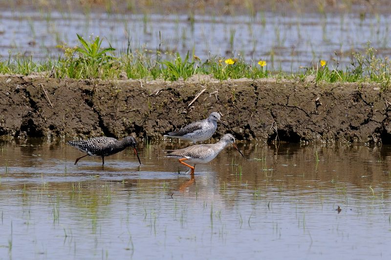 13.05.05 稲敷市 ・ツルシギ ・ツルシギ ・ツルシギ ・チュウシャクシギ ・オオハシシギ ・コアオアシシギ ・アオアシシギ ・タシギ ブログで夏羽のツルシギをみるたびに、見ておきたいと思っていました。今回、距離はありましたがチャンスを得ることができました。採餌に忙しい様子で、見ている間は動きを止めることがすくなかったと思います。 アオアシシギやコアオアシシギが行動をともにしており、一緒に見ることもできました。 別のところでは、タシギ、アオアシシギを見ました。 |
