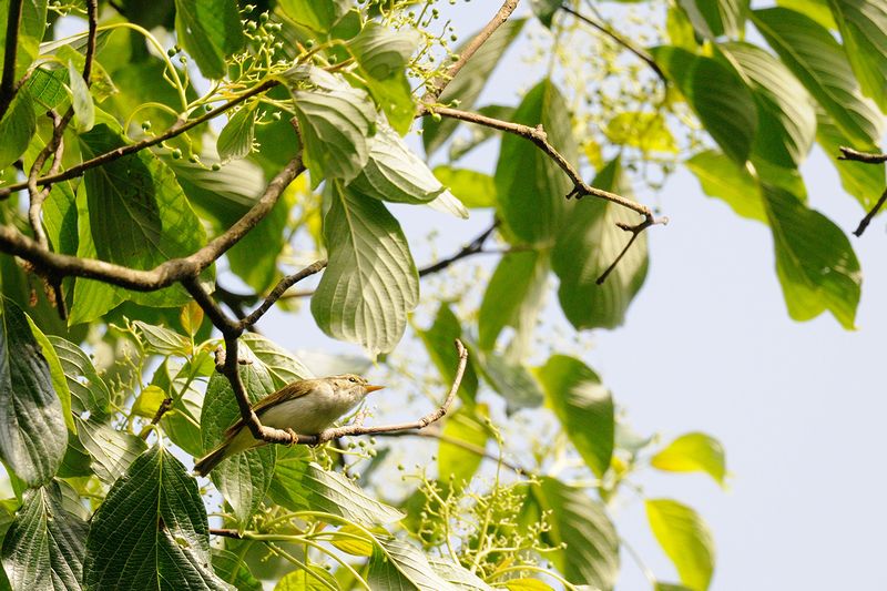 13.05.25 市原市 ・オオルリ ・オオルリ ・センダイムシクイ ・センダイムシクイ ・キセキレイ ・エナガ ・コゲラ センダイムシクイの声があちらこちらで聞かれました。枝をじっと見ていると、緑の葉の間に姿を見せてくれる個体もありました。見たのはお腹ばかりでしたが、出かけてよかったと思える時間をもらいました。 エナガやシジュウカラの幼鳥の姿もありました。シジュウカラの幼鳥は、自ら餌をとっているものもいましたが、巣立ったばかりのは、高い声を上げて羽をばたつかせて餌をねだっていました。 突然オオルリも姿を現しました。鳴き声は聞こえませんでした。近くで見ていた人は雄2羽を見たと言っていましたが、私が見たのは1羽でした。比較的低い枝で近くに止まってくれたのは、ここではあまりないことです。うれしく思いました。 <出会った鳥>シジュウカラ、ヒヨドリ、センダイムシクイ、サシバ(声)、ホトトギス(声)、ウグイス(声)、オオルリ、エナガ、ヤマガラ、コゲラ |