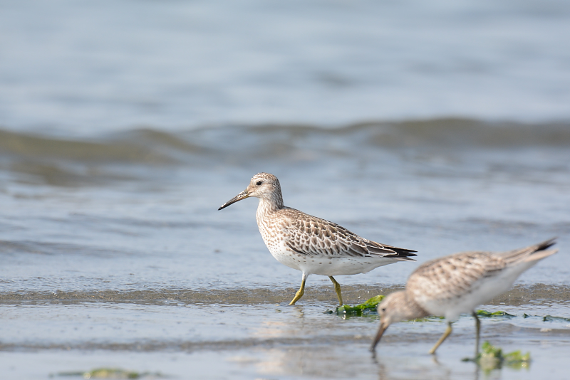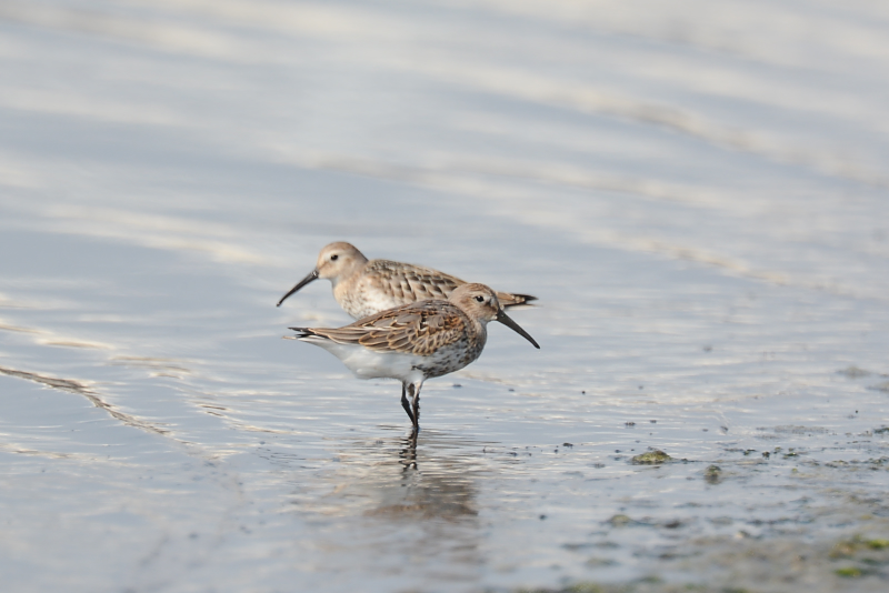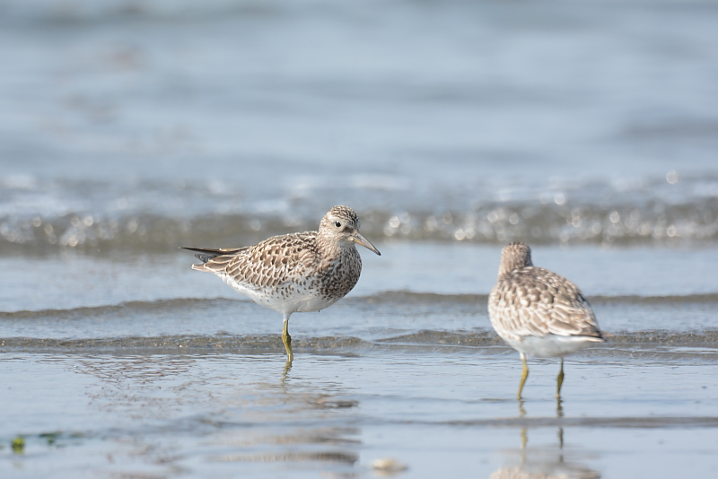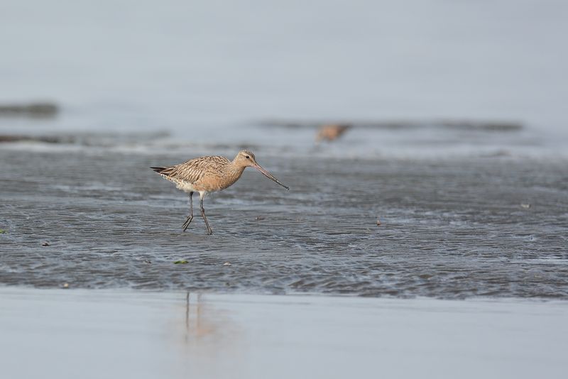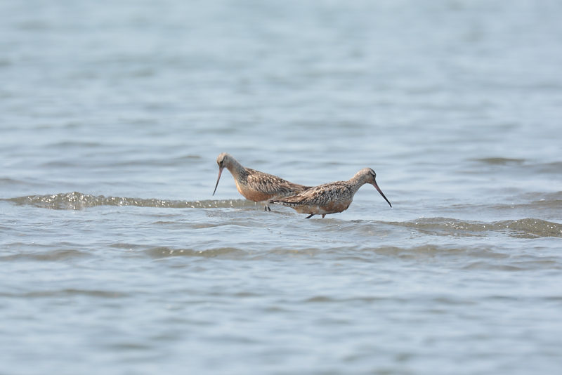 13.08.04 船橋三番瀬 ・ダイゼン ・オオソリハシシギ ・ソリハシシギ 朝のうち、天気は曇りで過ごしやすい天気でした。干潟はだいぶ現れていていて、あまり多くはない鳥たちは広く散らばっていました。 初めに目についたのは、1羽のオオソリハシシギです。長いクチバシを砂に突っ込んで餌取りをしていました。 ソリハシシギ、ダイゼンなどを写し、近くのミユビシギやキアシシギ、遠くのコアジサシの群れなどを見て、暑くなりそうになってきたところで帰ってきました。 |