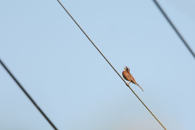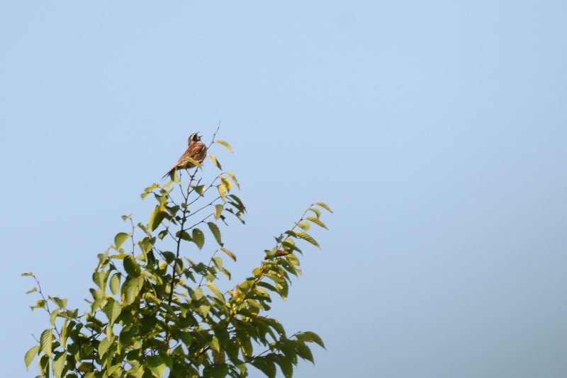13.08.19 いつもの公園 ・ホオジロ ・ホオジロ 公園入り口の電線で、ホオジロが囀っていました。県鳥になってますが、最近は見る機会が少ないように感じています。警戒心が強くて、油断して近づきすぎるとすぐに距離をおかれてしまいます。 |