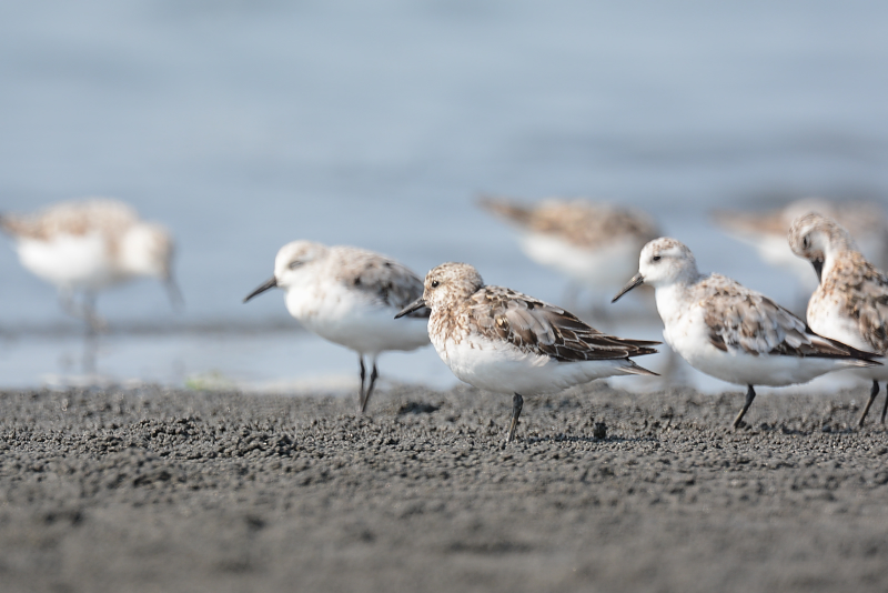 13.08.29 三番瀬 ・ダイゼン ・メダイチドリ ・トウネン ・ハマシギ ・オバシギ ・オバシギ ・ミユビシギ ・オオソリハシシギ ・オオソリハシシギ 久しぶりの三番瀬です。たくさんのミユビシギが採餌していました。市川よりの方では、トウネンやメダイチドリ、キョウジョシギなどが砂浜のほうにあがってきていました。 初めのところにもどって見ると、オオソリハシシギやオバシギの姿もありました。 |