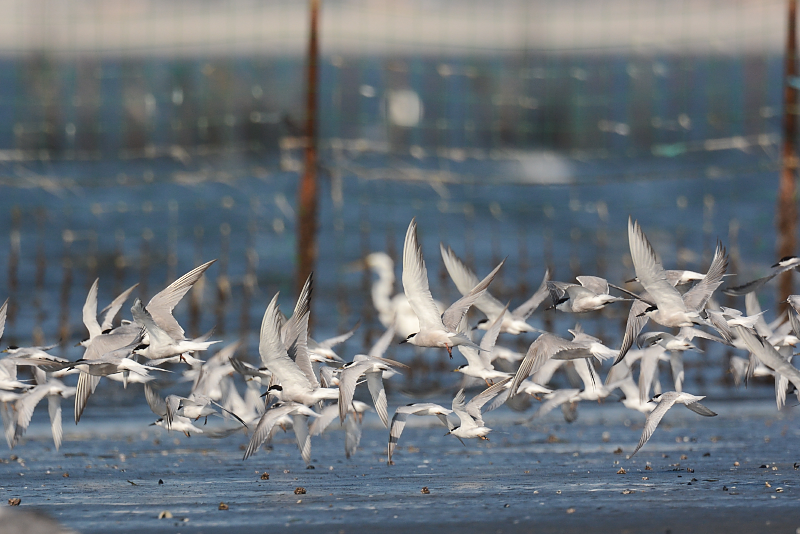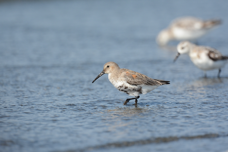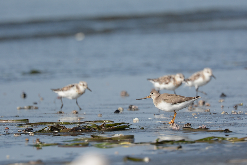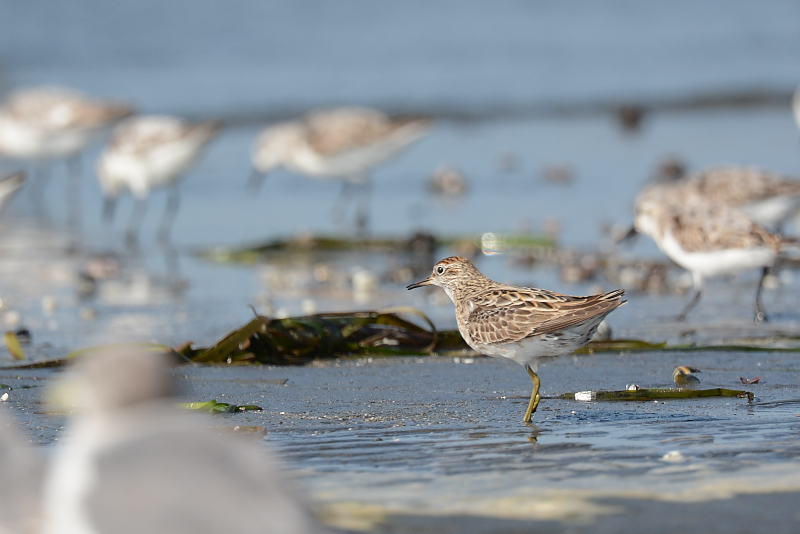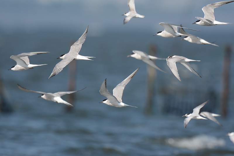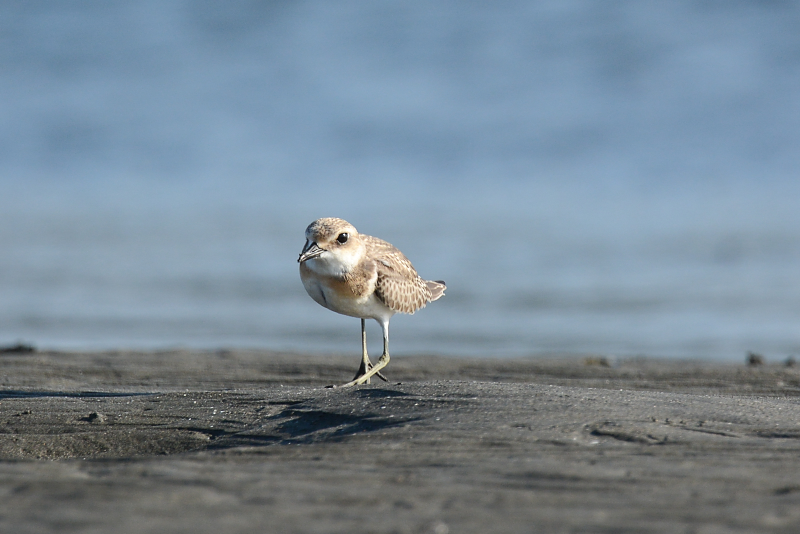 13.09.01 船橋三番瀬 ・アジサシとコアジサシ ・アジサシとコアジサシ ・ハマシギ ・オオメダイチドリ ・オオメダイチドリ ・ソリハシシギ ・ウズラシギ アジサシとコアジサシの群れが、水際から飛びたっては戻ってくることを繰り返していました。戻るときはばらばらですが、飛び立ったときは密度が濃く方向が揃っていて、迫力があります。 数名のカメラマンがレンズを向けていたのは、オオメダイチドリでした。私が見たときは、へこんだころにじっとしていて、でてきたときには素早く動いて飛んでいってしまいました。 水際に集まるミユビシギを写していたら、ウズラシギがレンズに飛び込んできました。他の方のブログで三番瀬で見られていたのは知っていたので驚きはしなかったのですが、運よく私も出会えました。 |