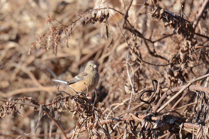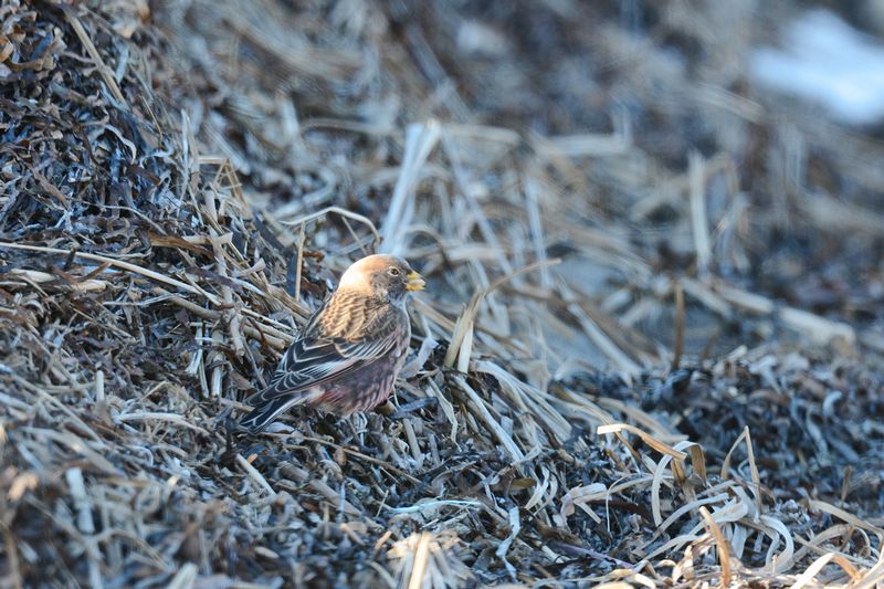 13.12.27-14.01.03 別海町 ・シラガホオジロ ・シラガホオジロ ・ユキホオジロ ・ユキホオジロ ・ユキホオジロ ・ハギマシコ ・シロエリオオハム 車をゆっくりと進めていると、2羽の小鳥が前を横切って道路脇の草むらに止まりました。双眼鏡で探すと、未見のシラガホオジロのようでした。しばらく遠くから見ていましたが、ゆっくりと近づいてみました。飛ばれてしまいましたが、それほど遠くへ飛ぶことはなく、後方の電線に止まりました。1枚目はそのときのものです。その後も、距離を縮めることはできませんでしたがしばらく姿を見ることができました。 車を先に進め、下りて海岸線を歩きました。1羽のハギマシコ、引き返すとき2羽のユキホオジロを見ることができました。上空を飛んで行ったのはシロエリオオハムのようでした。 |