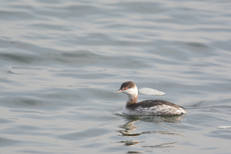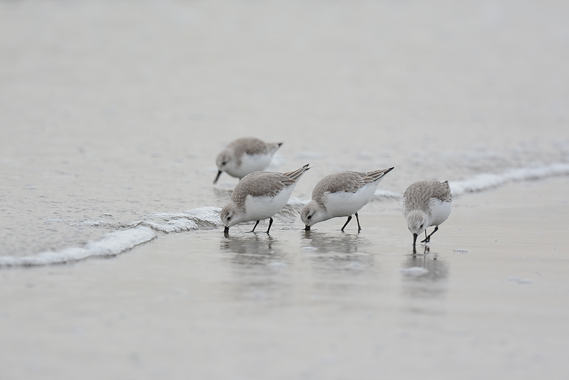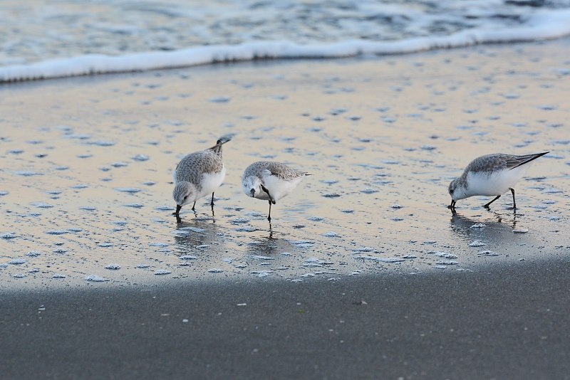 ・ミミカイツブリ ・アカエリカイツブリ ・クロガモ ・シノリガモ ・シノリガモ ・ミユビシギ ・ミユビシギ 突堤にはビロードキンクロ以外の水鳥も近づいてきました。ミミカイツブリは頻繁に姿を見せ、上手に餌取りをしているようでした。アカエリカイツブリ、クロガモ、シノリガモなども見ました。 最後に、砂浜で4羽のミユビシギが波を避けながら採餌しているのを見て家路につきました。 |