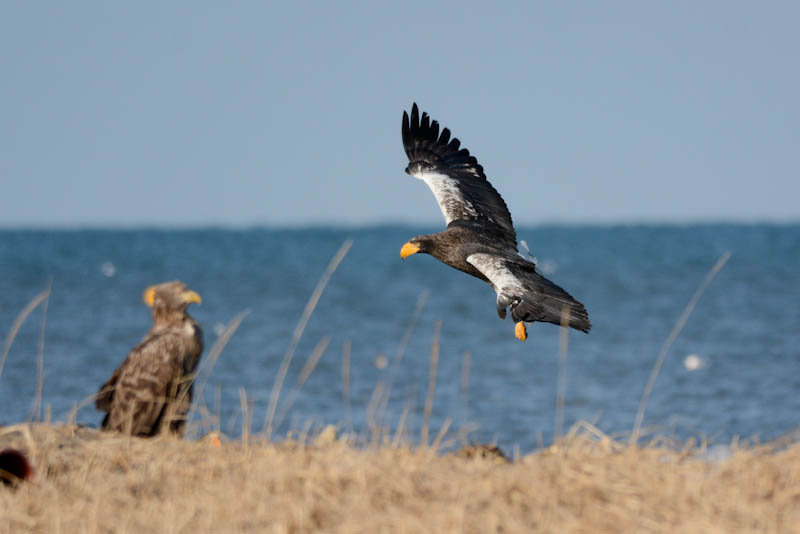標津・野付半島・尾岱沼・本別海 ・クロガモ ・クロガモ ・オオワシ ・オオワシ ・カワイサ ・ユリカモメ ・ミコアイサ ・ミコアイサ 漁港ではクロガモやカワアイサ、ユリカモメ、ミコアイサ、コオリガモを見ました。カモをいやがる釣り人もいるようです。コオリガモが雪つぶを投げられて、ちょうどあたってしまい、はっとしました。幸い大丈夫のようでしたが、共存したいものだと強く思いました。 ミコアイサは久しぶりでした。警戒心が強いのですが、餌取りに夢中の時だったようで比較的近くから見ることができました。 |