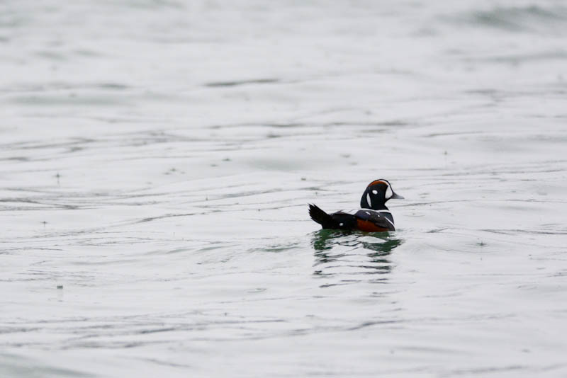 標津漁港 ・シノリガモ ・ホオジロガモ ・ワシカモメ ・シロカモメ ・カモメ 低気圧が近づき、これから道内は大荒れの模様という天気予報。雨が降る中、買い物ついでに漁港をみに行きました。ホオジロガモやシノリガモが港に入っていました。車を近づけると一旦は離れて行きましたが、エンジンを止め少し待つと再び近づいてきました。 陸にはカモメたちが羽を休め、近づいても警戒する様子もなく、吹き込む雨さえ避けられればじっくりとみられました。 |