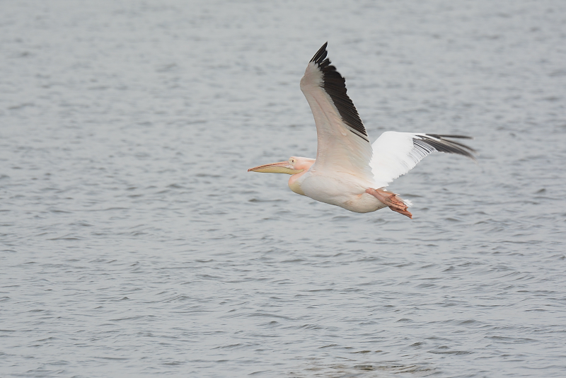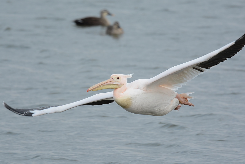 14.01.26 北印旛沼 ・モモイロペリカン ・モモイロペリカン ・モモイロペリカン 1月のことです。いままで船で休んでいる姿しか見ていなかったモモイロペリカンが泳ぎだし、そして突然周辺を飛びました。飛んだ(当然飛べるのでしょうが)、予想していなかったのでびっくりしました。頭上を飛んでいく姿は、その大きさが、まるでSF映画にでてくる場面のような迫力でした。 |