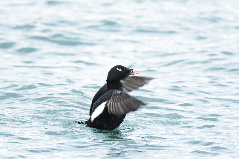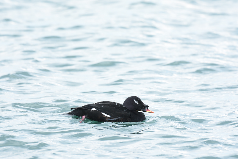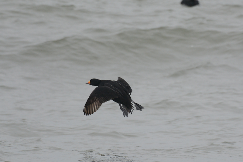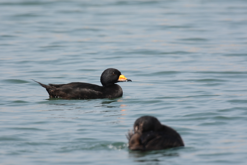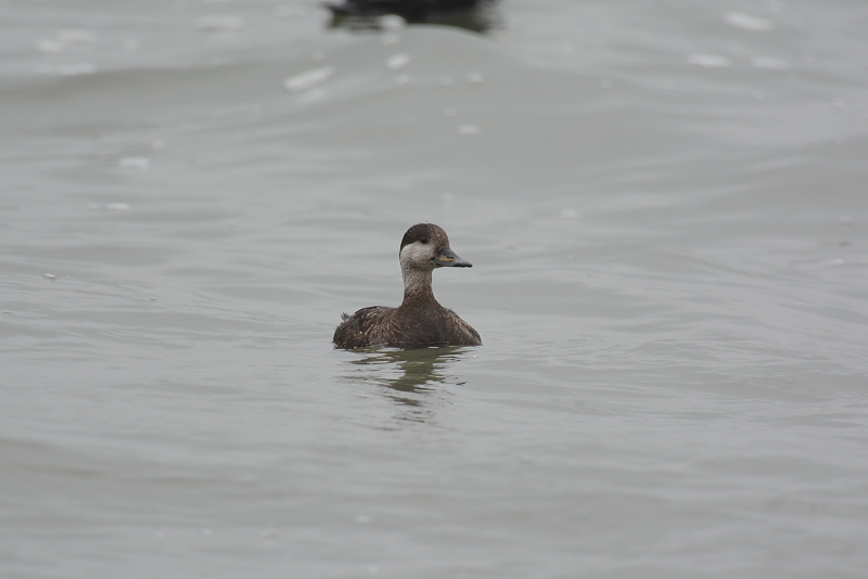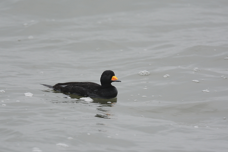 ・アカエリカイツブリ ・カンムリカイツブリ ・ハジロカイツブリ ・カモメ ・ビロードキンクロ ・ビロードキンクロ ・ビロードキンクロ ビロードキンクロ1羽が港の縁近くにやってきていました。しばらく離れていくことはなく、縁に沿うように移動したので、私も離れないようにゆっくりと歩き、近くで観察させてもらいました。午前中はアラナミキンクロもみられたという話をききましたが、午後は現れませんでした。 |