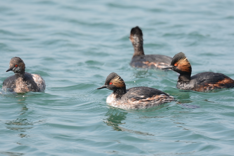 14.03.29 茨城県・千葉県 ・ヒバリ ・ノスリ ・ハジロカイツブリ ・スズガモ ・アカエリカイツブリ ・クロサギ ・ウミウ 港近くの草地でヒバリが盛んにさえずり飛翔をしていました。私のごく近くでさえずり飛翔をやる個体もあり、少しの時間見とれてしまいました。 ヒバリの近くにノスリを見たのですが、ヒバリに気をとられている間に近づく前に見失いました。 ハジロカイツブリは、夏羽になってきました。 教えてもらって、クロサギも見ることができました。 |