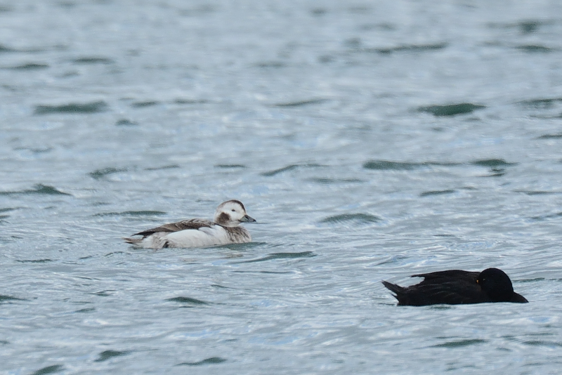 ・スズガモ ・コオリガモ ・シロエリオオハム ・クロサギ 遠くにコオリガモをみつけた人がいて教えてもらいました。近づいてくることはありませんでしたが、なんとか確認できる距離ではありました。 |