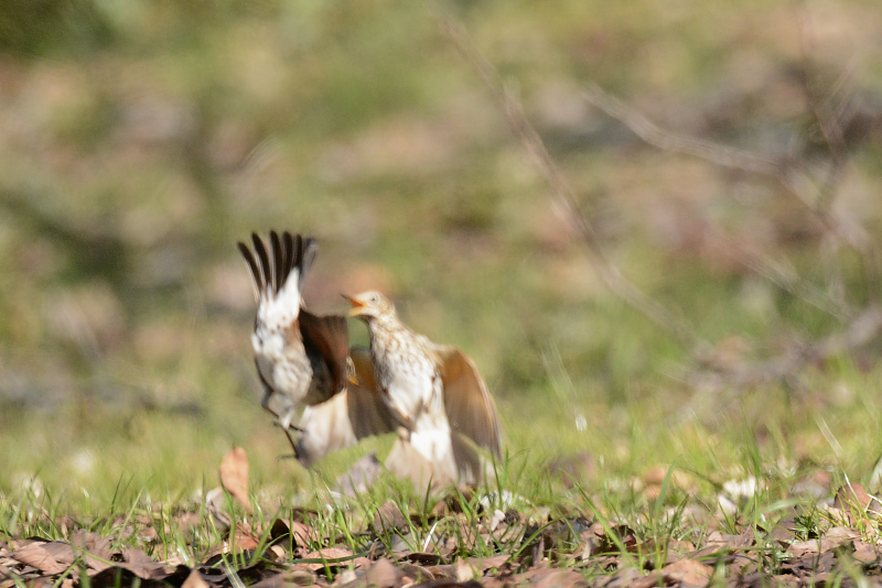 14.03.08 神奈川県 ・ウタツグミ ・ウタツグミ ・ウタツグミ ・ウタツグミ ・ウタツグミ ・トラツグミ ・ツグミ ・ビンズイ とても小さな桜の広場の端の植え込みにいましたが、やがて中央の方へ出てきました。地面から餌をついばみ、ごく近くまで近づいてくることもありました。普通のツグミもいて、バトルがあったのでシャッターを押してみました。ピンぼけですが、羽の裏側の特徴がみられるかな。 国内では数例しか記録がないとあってか人は多く、この日は100人ぐらいのバードウォッチャーをみました。 |