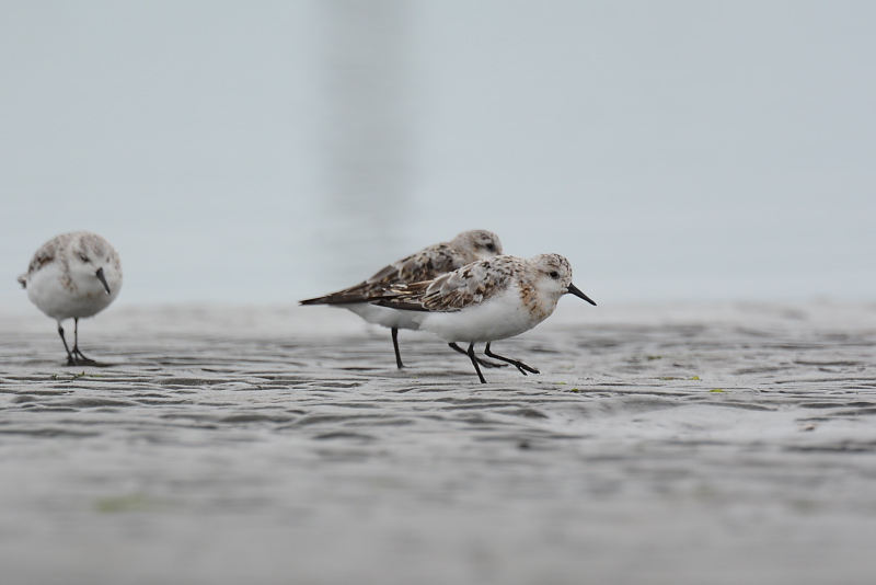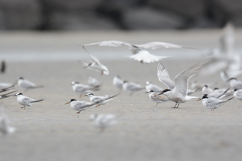 14.08.29 三番瀬 ・ミヤコドリ ・ユリカモメ ・オオソリハシシギ ・ソリハシシギ ・ミユビシギ ・メダイチドリ ・アジサシとコアジサシ ミヤコドリやアジサシとコアジサシの群れをみました。 涼しくて過ごしやすい天気でしたが、青潮が発生していて、潮が引いた後にアカエイが大量に残っていました。しっぽに毒があり、誤って踏んでしまうとしっぽでたたきつけられて毒針が刺さることがあるとのことです。関係者の方が回収していました。 この話を聞いてしまうと、いくら長靴とはいえうかつに水に入りにくくなり、おまけに雨もぽつぽつ降ってきたので、短時間で引き上げることになってしまいました。 |