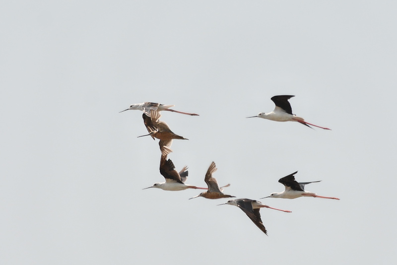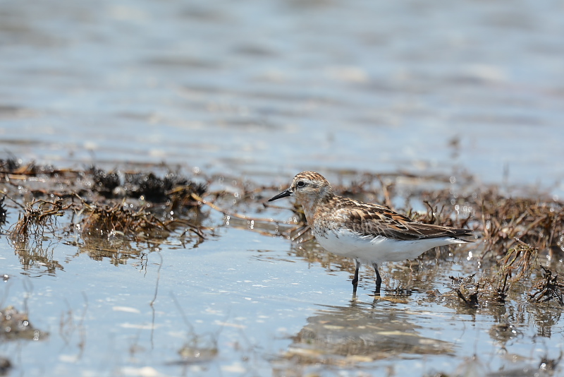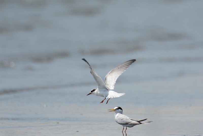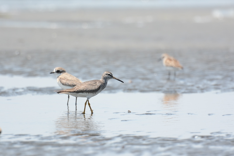 14.08.02 三番瀬 ・オオメダイチドリ ・メダイチドリ ・メダイチドリ ・トウネン ・トウネン ・トウネン ・キアシシギ ・コアジサシ 三番瀬は満潮をむかえていて、しばらく待ちました。やがて、メダイチドリなどの群れがやってきて市川側に降りたようでしたので、行ってみました。オオメダイチドリやトウネンも混じっていて、しばらく観察しました。そのうち、コアジサシの群れも見るようになりました。 賑やかになってきたのですが、気温も上昇してきて暑さが厳しくなってきたので、早々に引き上げました。 |