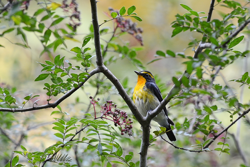 14.10.04 千葉県 ・オオルリとキビタキ ・オオルリ ・キビタキ ・キビタキ ・キビタキ ・キビタキ ・キビタキ ・エゾビタキ ・アカゲラ ・キジ ヤマコウバシの実がちょうど食べ頃なのでしょう。キビタキやエゾビタキが頻繁に実をついばみにやってきていました。オオルリやキビタキの雄も短い時間姿を見せました。これらはこれから南へ渡っていきますが、図鑑を開くとキビタキは中国南部、インドシナ、マレー半島、ボルネオ、フィリピンで冬を過ごすようです。 キジ2羽は行きの途中で見かけました。周囲をあまり気にしていない様子で、道を横切ってガードレールの上に止まってのんびりしていました。 |