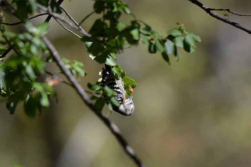 ・アオゲラ ・アオゲラ ・ゴジュウカラ ・ゴジュウカラ ・コガラ 宿の人の話ですと、宿の周辺は今年はドングリの実が見当たらないくらい少ないそうです。熊の目撃情報もあり、鈴を鳴らしたり話し声をたてながら歩くなど用心した方が良いと、聞きました。早朝、宿の周辺を歩きましたが、林の中に入るのはやめました。ホオジロ、カシラダカ、アトリ、カケスなどを見て、アオバトの声を聞きました。短い時間でしたが、気持ちのいい時間でした。 朝食後は、昨日のムギマキを見に行きましたが、同じように姿を見せたのは1カ所のみでした。アオゲラやコガラが姿を見せてくれました。 |