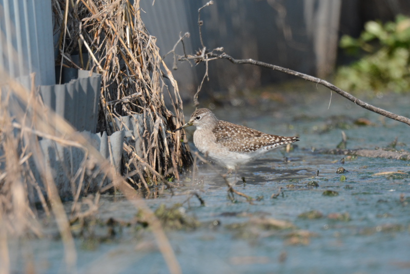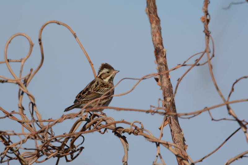 ・ウグイス ・スズメ ・オオジュリン ・アオアシシギ 汽水池では、越冬中の2羽のアオアシシギを見ました。横の葦原ではオオジュリンが葦を割って盛んに餌取りをしていました。 |