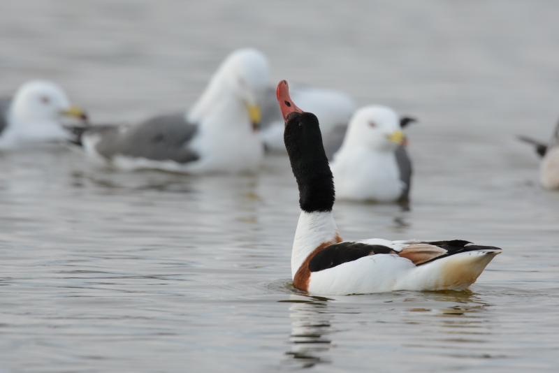 15.02.07 千葉県 ・ツクシガモ ・ツクシガモ ・ツクシガモ ・ツクシガモ ・ツクシガモ ・カモメ ・ウミスズメ ・ミミカイツブリ ・イソヒヨドリ ・ハヤブサ ツクシガモに出会いました。ウミネコやカモメたちが集まっている水たまりにいて、せわしなく水面に顔をうずめて餌とりをしていました。しばらくすると、何かに驚いたのか、飛びたち旋回してまた元の場所に戻りました。初めて見たカモだったので、うれしい出会いでした。 港にはウミスズメが1羽入っていました。昨年暮れに納沙布岬で見ているのですが、かなり距離がありました。今回は、すぐに遠くへ泳いで行ってしまったのですが、見つけた時は近い距離でした。何ともかわいらしい鳥と思います。 |