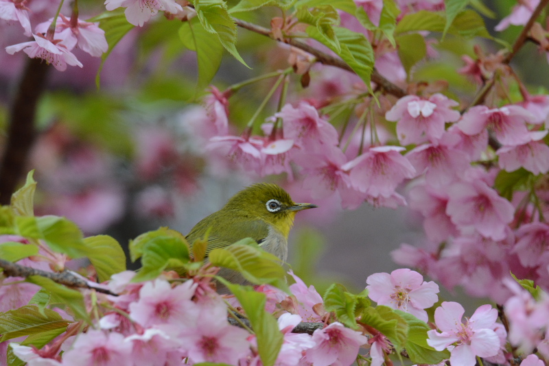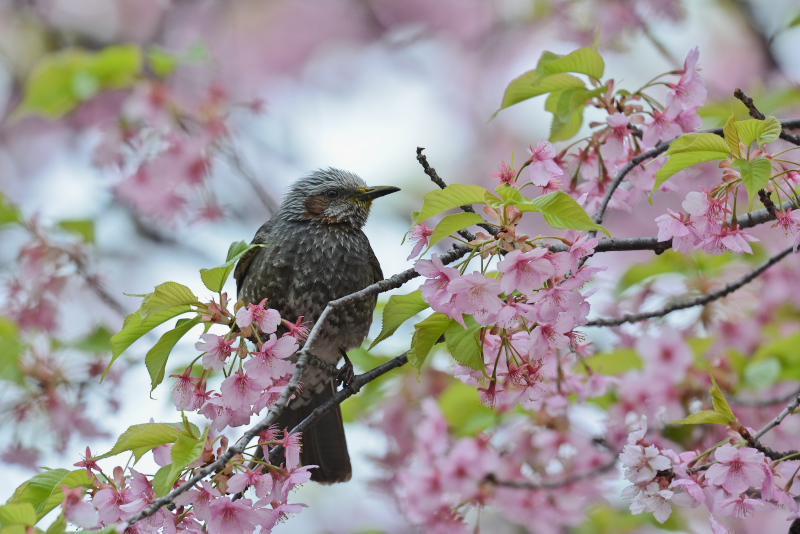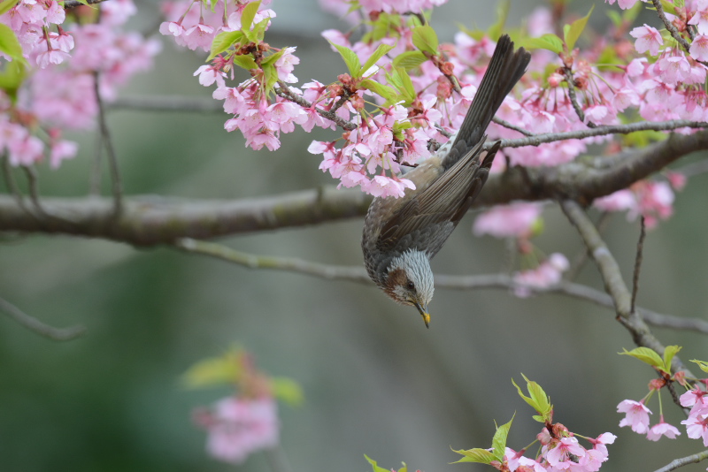 15.03.21-22 千葉県・茨城県 ・ヒヨドリ ・ヒヨドリ ・ヒヨドリ ・メジロ ・シジュウカラ ・シメ 自宅近くの公園の河津桜は満開を過ぎていましたが、ヒヨドリやメジロがやってきていました。ヒヨドリは比較的大きな体にもかかわらず、いろいろな向きになって蜜を吸うんですね。 |