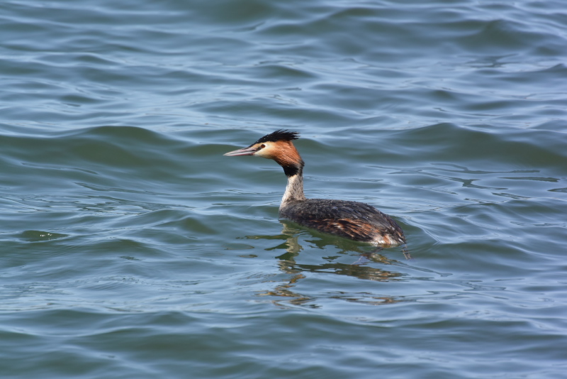 ・ユリカモメ ・カモメ ・カンムリカイツブリ ・イソヒヨドリ 冬の間見慣れていた白と黒のカンムリカイツブリも夏羽になっていました。 |