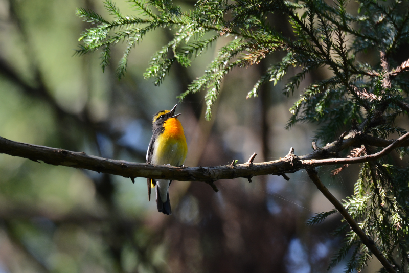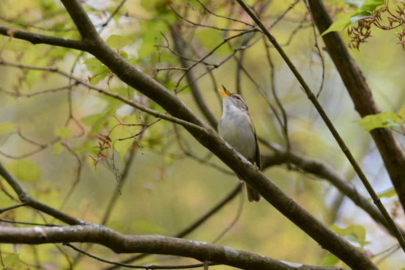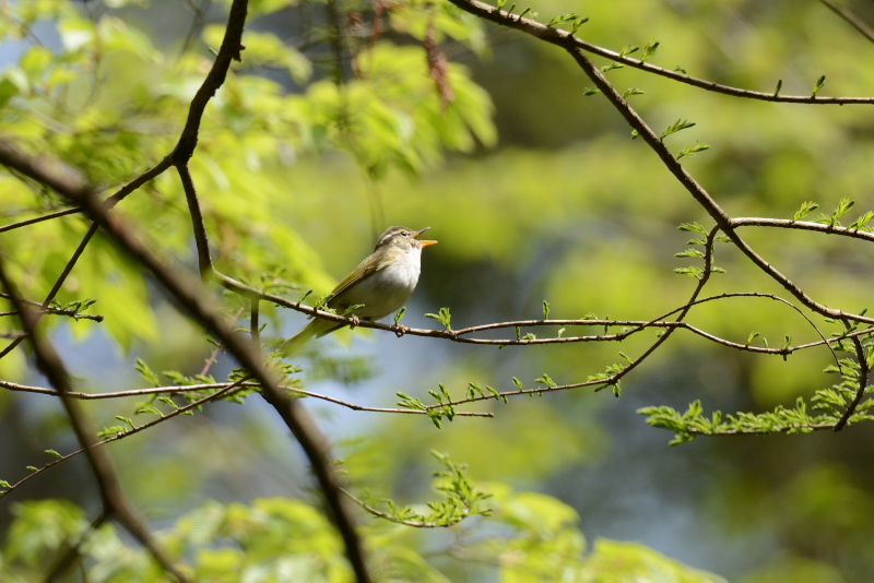 15.04.18 千葉県 ・オオルリ ・オオルリ ・オオルリ ・センダイムシクイ ・センダイムシクイ ・ヤマガラ ・エナガ ・カワセミ 暖かさが戻り、穏やかな一日でした。「チヨチヨビー」センダイムシクイや「ピーリーリー」オオルリの声を聞きながら森の中をのんびりと歩きました。低いところでバトルする2羽のオオルリを見ましたが、この時期は縄張りを主張しテリトリーを確保するために必死のようです。別の場所でも同じ状況があり、多くの雛が巣立っていってほしいと期待がふくらみます。 センダイムシクイもあちらこちらで声を聞きました。緑の葉の間から姿が見え隠れし、開いた嘴が光を通してきれいでした。 ヤマガラやエナガの活発な姿も見ました。ここでは珍しく、カワセミを写すことができました。 |