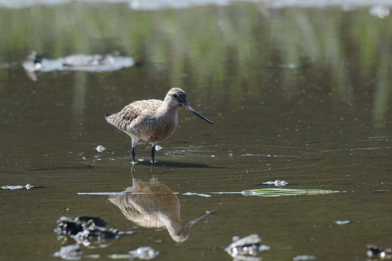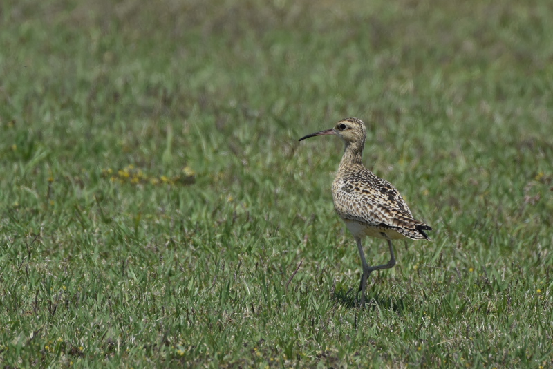 15.04.26-27 東京都・千葉県 ・コシャクシギ ・コシャクシギ ・コシャクシギ ・コシャクシギ ・キビタキ ・キビタキ ・キビタキ たくさんのレンズが並ぶ中にくわわり、芝生で採餌するムクドリを見て待ちましたが、長い時間待つこともなくやってきました。鳥見人だけでなく、単に休日を楽しむ人たちも大勢いるのにそこに現れたことに驚きましたが、夢中で姿を追いました。何の下調べもなく行ってしまったので、チュウシャクシギと変わらないシギに見えました。芝生の上を飛ぶ虫を追って歩き回り、じっと止まることはありません。そのうち、飛び上がり上空をとんでもどりましたが、少ししてまた飛んで行きました。短時間でしたが、はじめての鳥を見て感激でした。帰って図鑑を見ると、チュウシャクシギよりも10pほど小さい体で、嘴も短いのでした。 キビタキはいつもの公園です。少なくとも、4カ所で声を聞きましたので楽しみです。 |