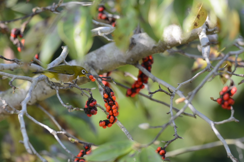 15.10.24-25 千葉県・茨城県 ・キビタキ ・キビタキ ・キビタキ ・キビタキ ・メジロ ・ジョウビタキ コブシの実に人気がでていて、他の実にはほとんどやってきません。からだの大きさと比較したら実は大きくて食べにくいと思うのですが、この実には何か特別の魅力があるのでしょう。 |