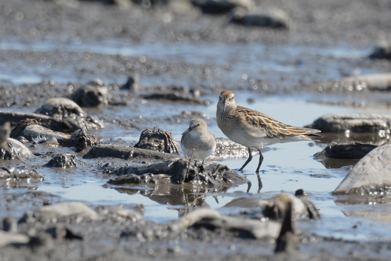 ・ウズラシギ ・ウズラシギ ・ウズラシギとオジロトウネン ・オジロトウネン ・コアオアシシギ ・タカブシギ ・クサシギ ・コチドリ 一カ所にとどまっていてこれほど多くのシギ、チドリをみられるチャンスはそれほど多くないと思います。十分に楽しむことができました。フィールドスコープでじっくりと見たいなと思う時間でした。 |