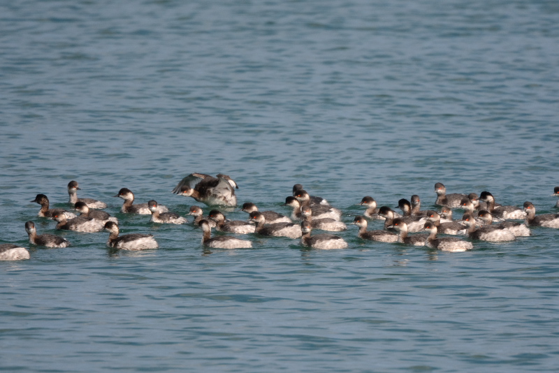 16.01.31 千葉県 ・カンムリカイツブリ ・ミミカイツブリ ・ハジロカイツブリ ・アカエリカイツブリ ・シロエリオオハム ・ウミスズメ ・ウミスズメ ・キバラガラ ・シメ ハジロカイツブリの群れは、数羽が潜ると次々に潜り始めるので、群れがあっという間に海上から消えます。群れの写真の中には、おもしろいポーズのものもいました。 |