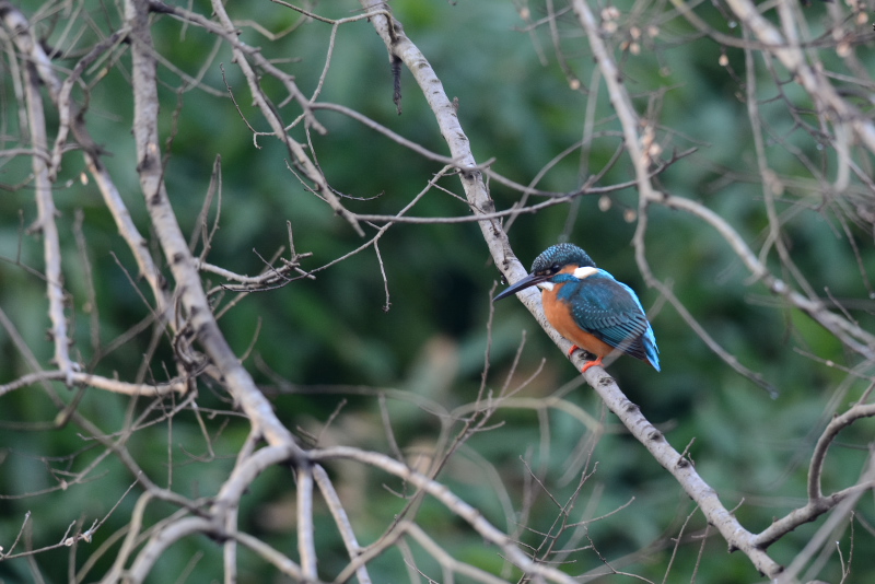・ヤマガラ ・カワセミ ・シジュウカラ ・ビンズイ ・ヨシガモ カワセミが、定位置についてダイビングを試みていました。1、2度魚をくわえている姿を見ました。 |