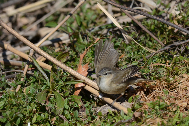 ・ムジセッカ ・ムジセッカ ・ムジセッカ ・ムジセッカ 強い風が吹いていて三脚が倒されそうでした。午前中はよく出ていたけれど、声も聞こえず、ぱたりと姿を見せなくなったという話をきき、あきらめかけました。でも、しばらく待つと、ラッキーなことに藪の中から姿を見せてくれました。地上に近いところをうろうろしていました。鳴き声は強い風に消されてよく聞こえなかったのが残念です。 |