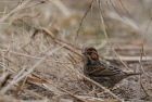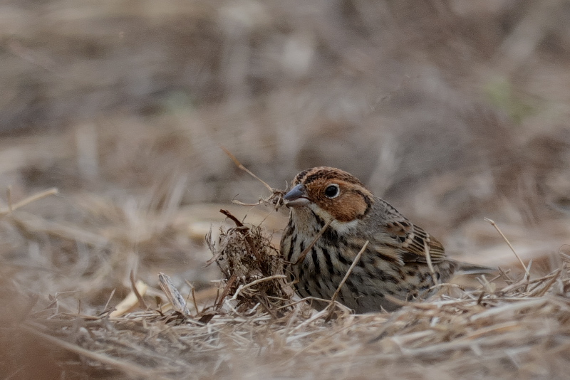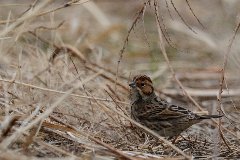 16.03.05 東京都 ・コホオアカ ・コホオアカ ・コホオアカ ・オオホシハジロ ・オオホシハジロ ・ホシハジロ ・ミコアイサ コホオアカは草の中で草の種を食べている様子でした。見通しのきくところに姿を現しません。それでもじっと待っていると、時々姿を見せることがありました。短い時間ですが、枝に止まることもありました。橋の上からは全身がよく見えました。 オオホシハジロは近い距離を泳いでいました。時々もぐり、嘴や額にどろをつけてあがってきていました。 |