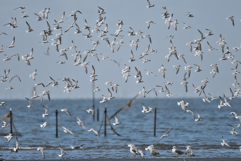 16.08.21 三番瀬 ・オオメダイチドリ ・オオメダイチドリ ・オオメダイチドリ ・オバシギ ・コアジサシ この日はオオメダイチドリやオバシギ、コアジサシの群れがみられてとても賑やかでした。コアジサシの群れに他のアジサシは混じっていないようでした。 |