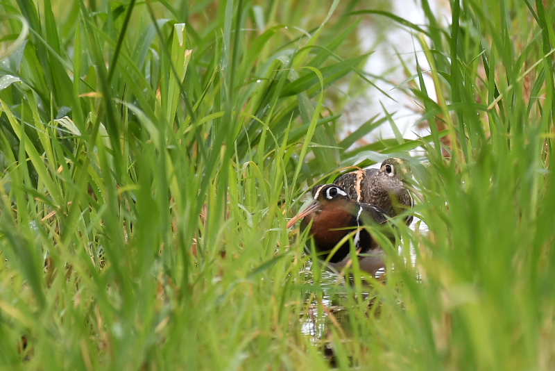 ・タマシギ ・タマシギ ・ツヅドリ ・ツツドリ タマシギの番いが草の間から姿を見せてくれました。こちらを向いた後、向きを変えてゆっくりと奥の方へ進んで行きました。戻るように祈りましたが、願いは届きませんでした。 |