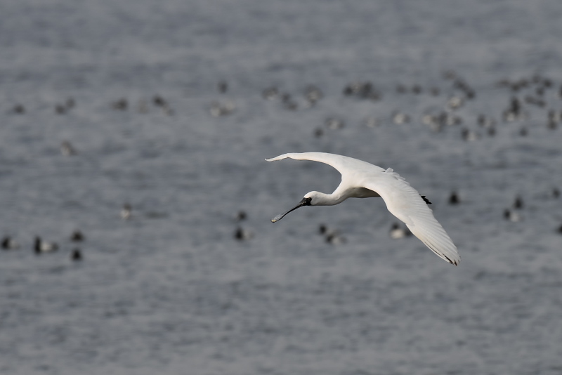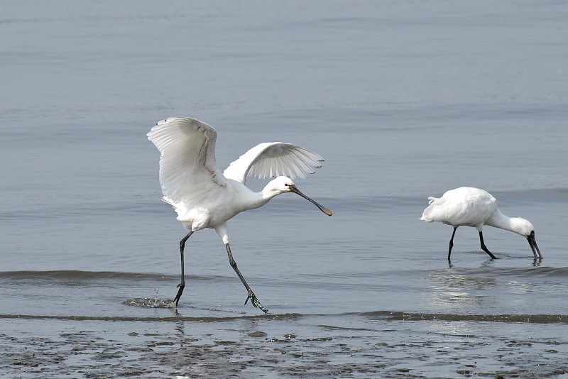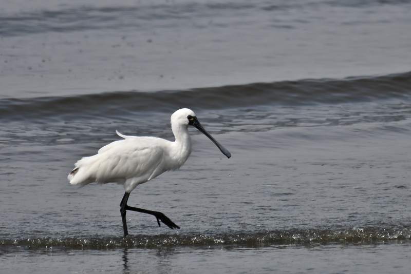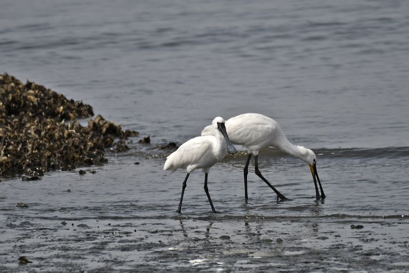 ・ヘラサギとクロツラヘラサギ ・ヘラサギとクロツラヘラサギ ・クロツラヘラサギ ・クロツラヘラサギ 2羽は行動を共にしていました。だんだん遠くまで範囲を広げて採餌した後、また東渚の方へ飛んで行きました。きれいな夏羽を是非みたいな。 |