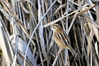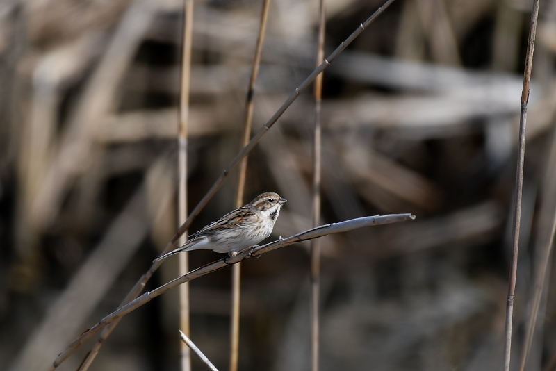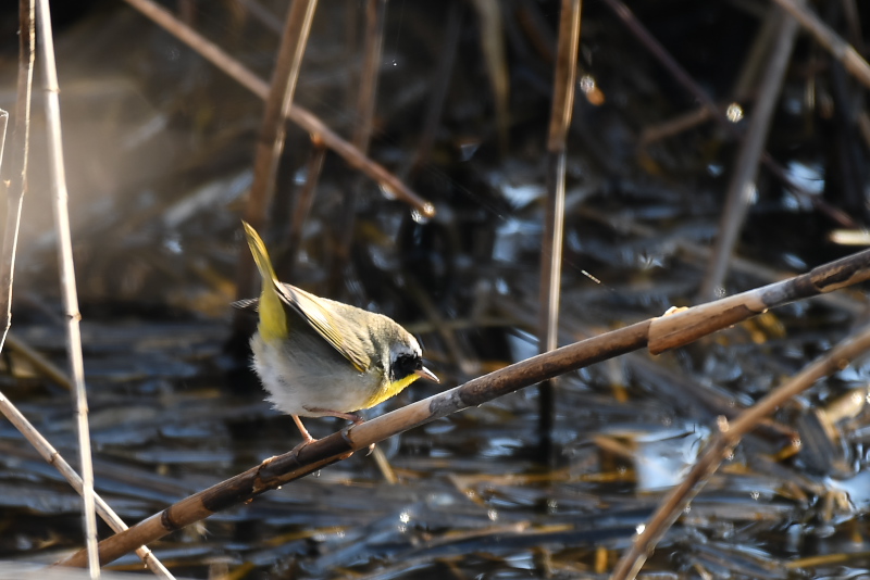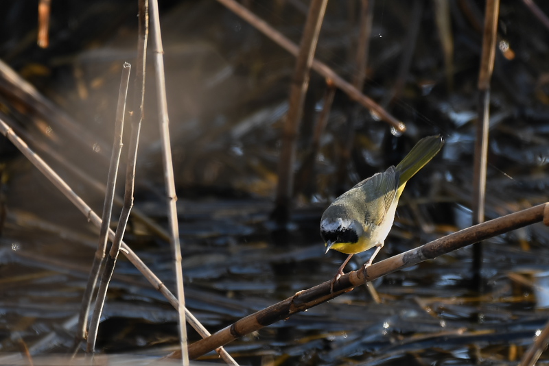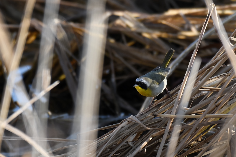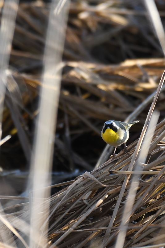17.03.28-29 茨城県 ・カオグロアメリカムシクイ 黄色い色にひかれて見に行って来ました。声をたよりに葦のすき間に姿を探しますが、すぐに隠れます。写真はもちろん、見ることさえ簡単ではありません。幸運なことに、数秒間、全身が見えたときがありました。その瞬間をとらえたものです。 |
