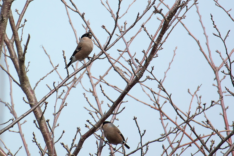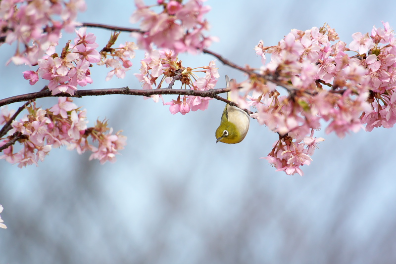 17.03.04 東京都 ・アメリカコガモ ・ウソ ・アオジ ・メジロ 昼頃なら起きて近くまでくることがあるというので、周辺を歩いてから再び訪ねてみるとその通り近くを泳いでいました。目的のカモを写すのは以外とやっかいなものです。訪ねても留守だったりもします。 桜が咲き始めましたね。ここでも、メジロがやってきていました。 |