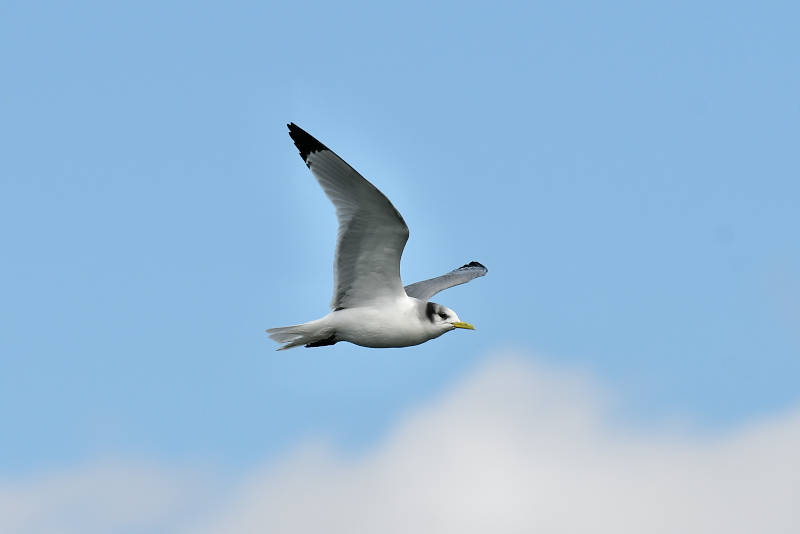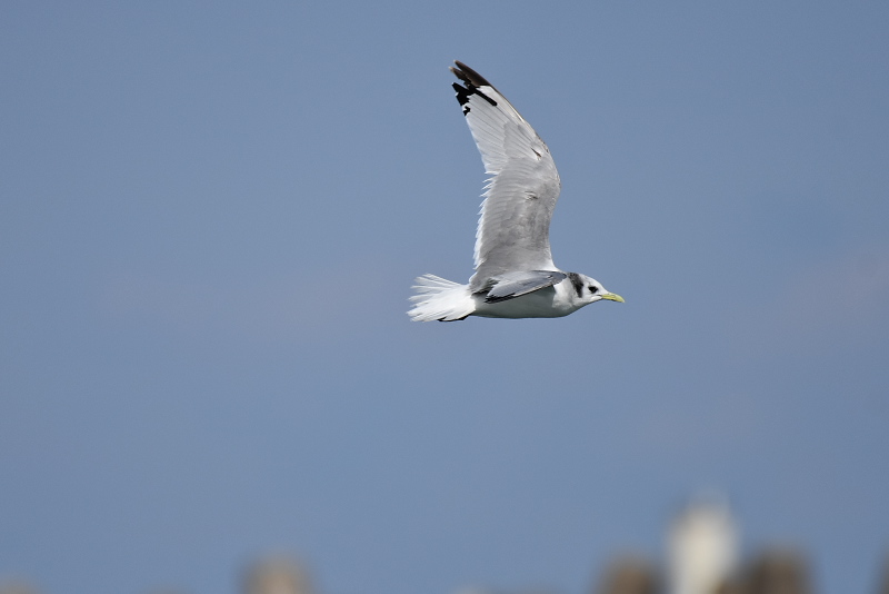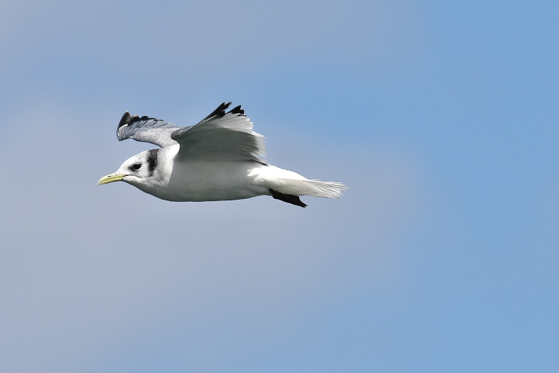 17.02.26 千葉県・茨城県 ・ミツユビカモメ 例年見かける漁港で何度も往復するように近くを飛んでいました。複数羽いるようでした。昨年は出会いがなかったので、うれしい出会いです。嘴が淡い黄色であることや後頭部の黒斑に特徴があります。 |