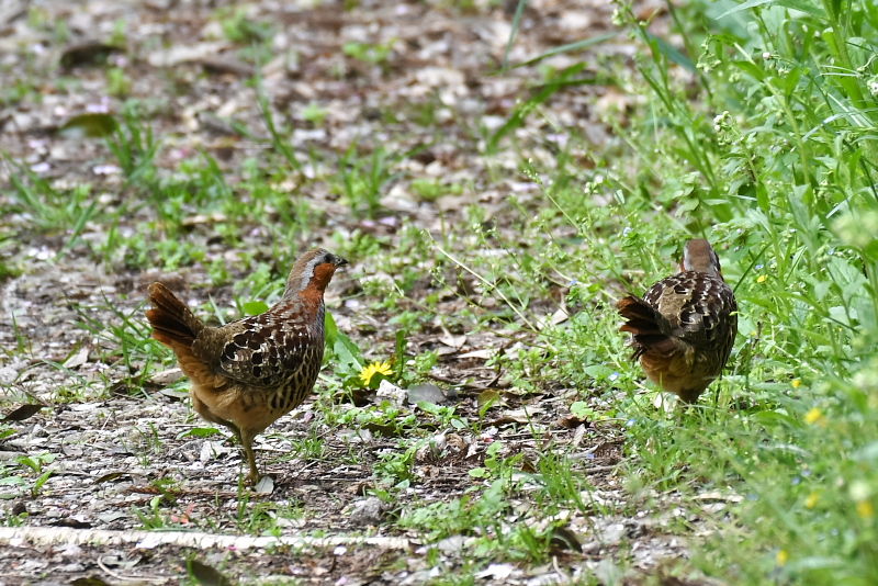 17.04.24 千葉県 ・コジュケイ ・コジュケイ ・ツミ ・キビタキ ・キビタキ ・キビタキ コジュケイの声がやかましく響いていました。「コジュケイ、見ていないね。」「そうだね。」そんな会話をしたあと、姿を見ることになります。森の小道に現れ、反対側にゆっくりと移動していきました。2羽でした。 |