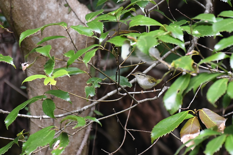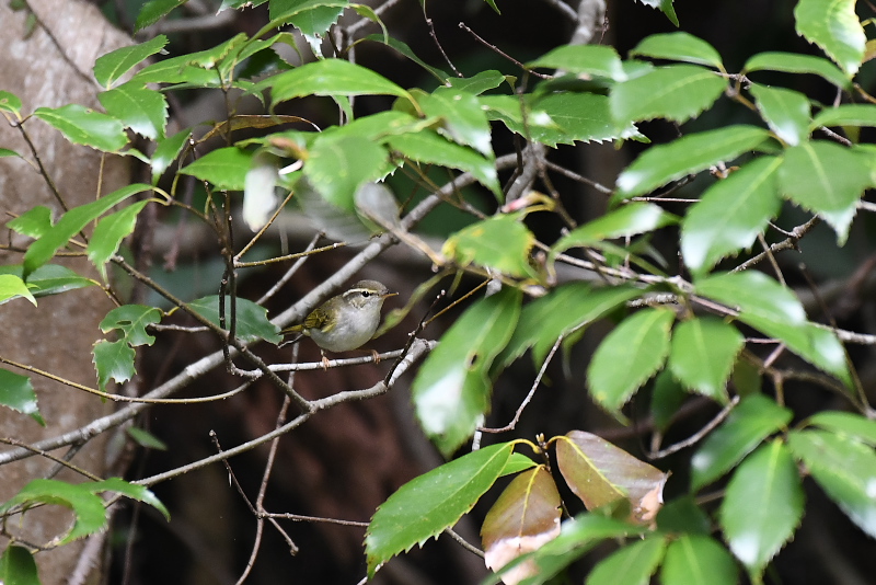 ・センダイムシクイ センダイムシクイは囀りが聞こえてくるものの、高いところなので、うまく姿をとらえるのは難しかった。諦めた帰り道、目に止めたヤマガラの近くに現れました。今回期待していた鳥なので、うれしい出会いでした。 |