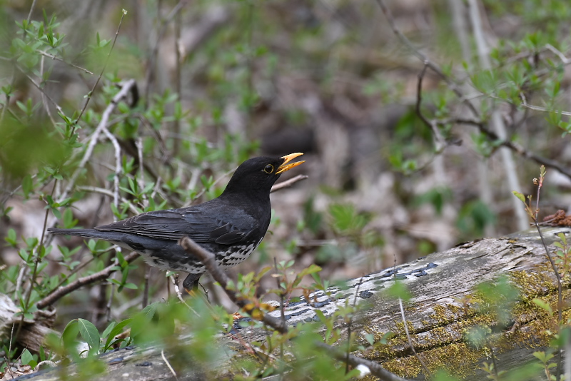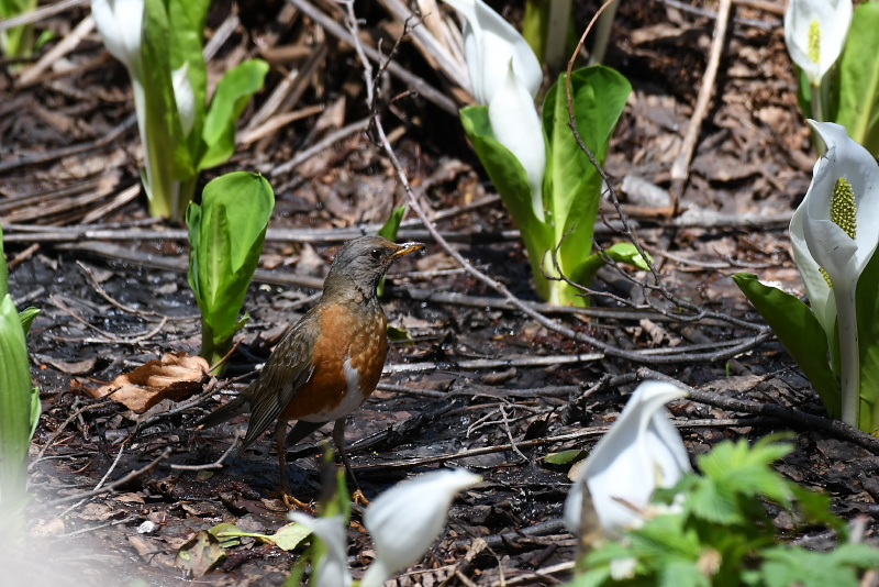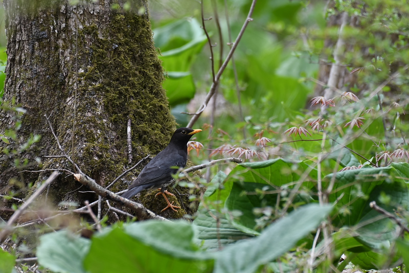 ・コルリ ・コルリ ・アカハラ ・ミソサザイ ・ホシガラス ・ホシガラス 思いがけず、コルリが現れました。数分間じっとしていたので、美しい姿を堪能しました。雌も近くにいるというので、期待したのですが見ることはできませんでした。上空には「ヒーリーリ、ヒーリーリ」のサンショウクイの声、巣材集めでしょうか下に降りてくることもありました。クロツグミは囀りは聞こえませんでしたが、姿はあちらこちらで見ました。 |