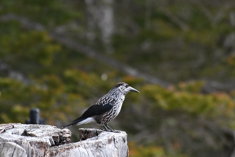 ・コガラ ・ルリビタキ ・アカハラ ・ミソサザイ ・ホシガラス ・ホシガラス ホシガラスは、「お待ちしていました」と言ってくれているかのように、近くの杭の上に乗って迎えてくれました。フレンドリーな印象です。 |