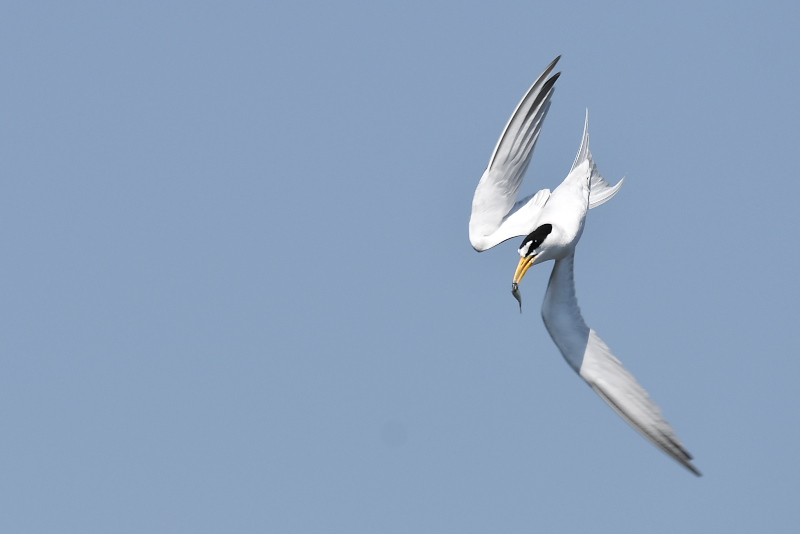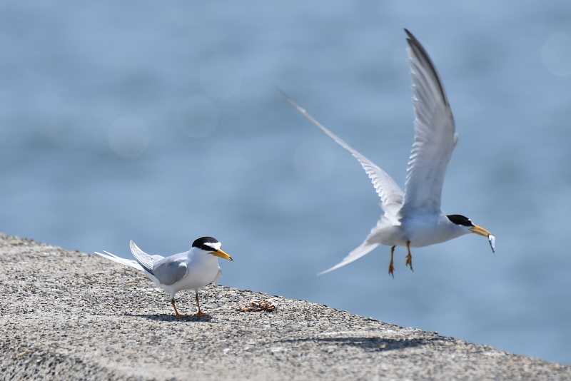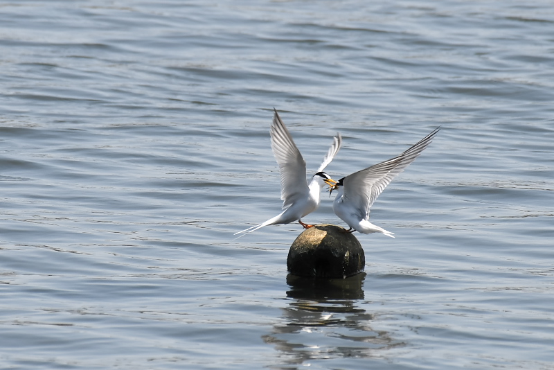 17.04.30 千葉県・茨城県 ・コアジサシ ・コアジサシ ・コアジサシ ・コアジサシ ・アカエリカイツブリ コアジサシがダイビングで小魚を捕る様子は見ていて飽きません。狙いを定めて、真っ逆さまに海に突っ込んでいきます。捕った小魚を受け取ってもらう、求愛給餌の様子もおもしろいものです。中には受け取っておもらえないこともあるようです。コアジサシのこのような行動は、この地域では6月頃のことと思っていましたが、4月から見られるとは以外でした。 |