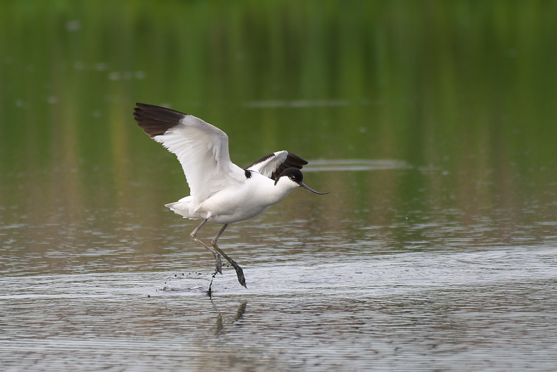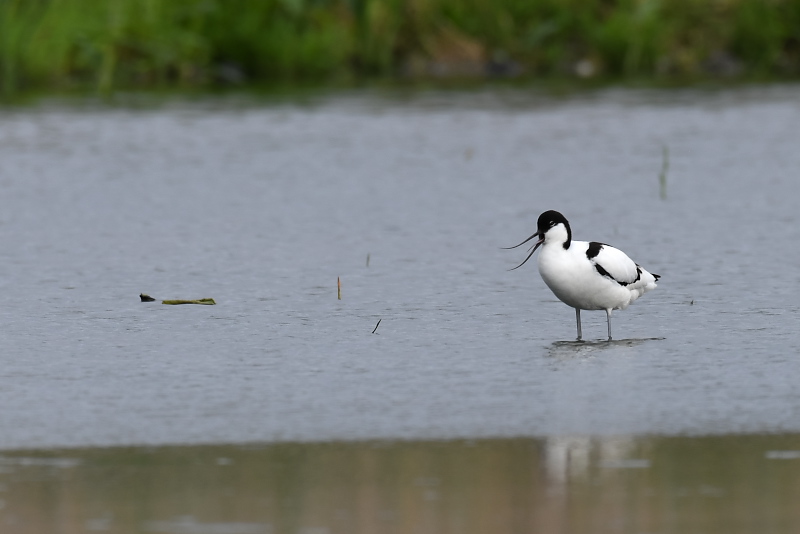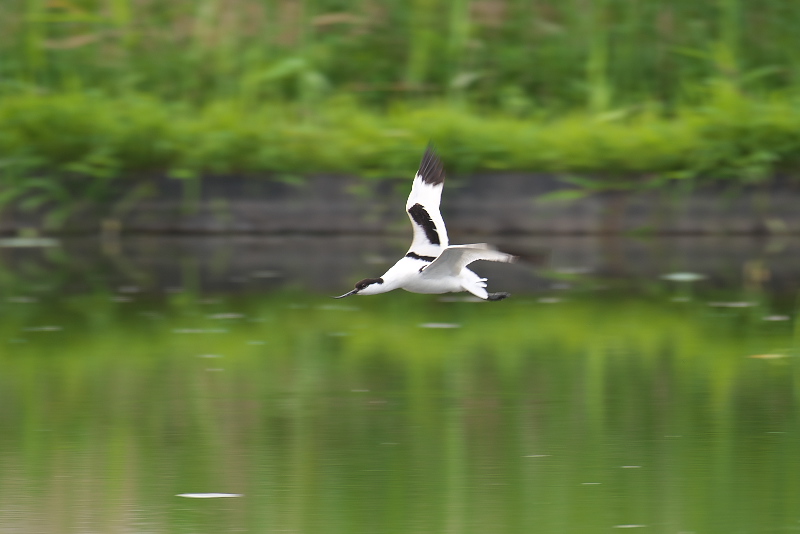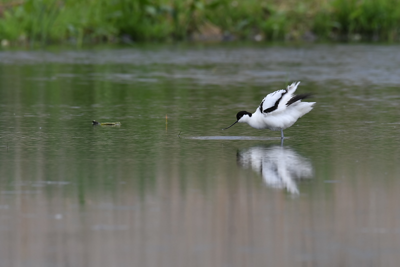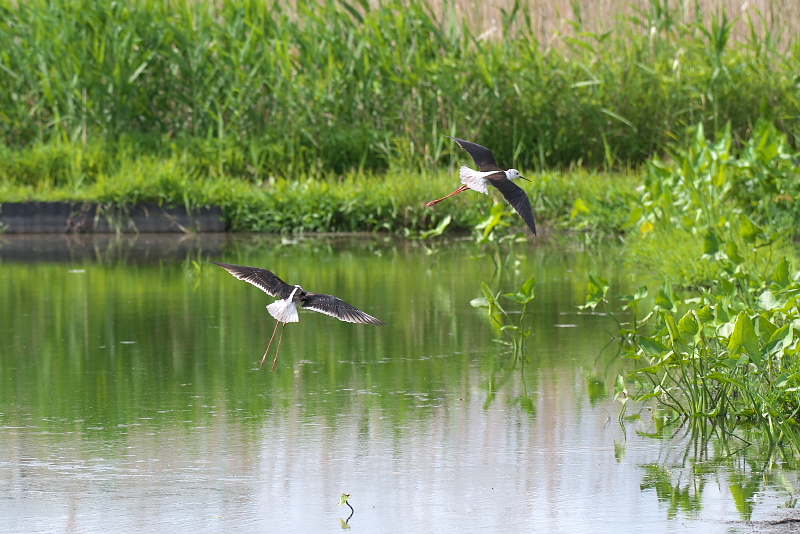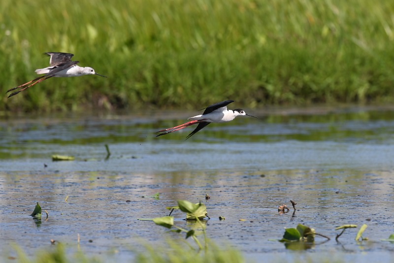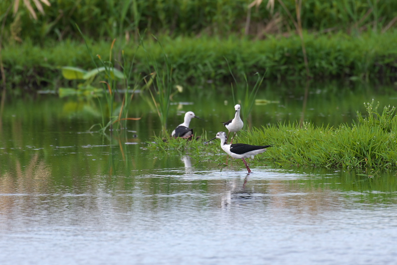 ・ソリハシセイタカシギ 羽繕いから伸びをしたり、終わると周囲を飛んだりしました。飛ぶスピードはとても速く、追うのはとても難しく感じました。 |
