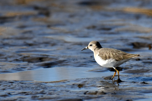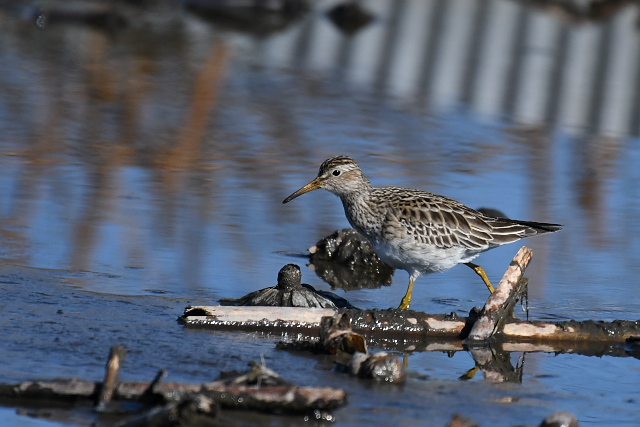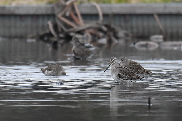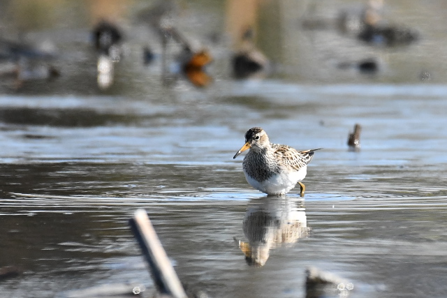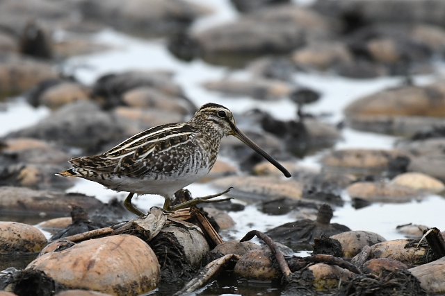 冷え込んだ朝で、いたるところ氷が張っていました。タシギを次々に飛ばしながら、蓮田を歩いてみました。 アメリカウズラシギは、初めて見て以来2度目だったのでうれしい出会いです。遠くにいたのだけれど、餌を求めてずいぶん近くまでやってきました。今日は運のよい日でした。