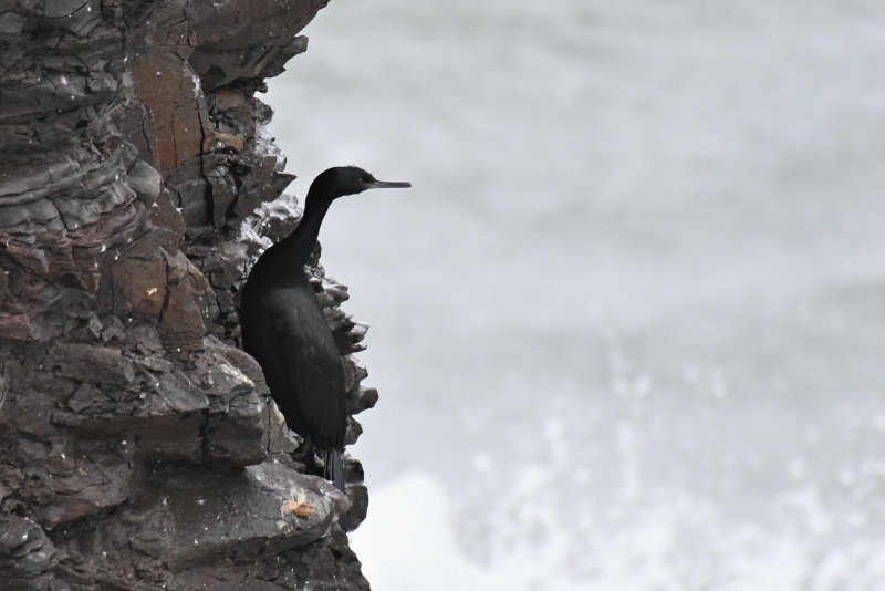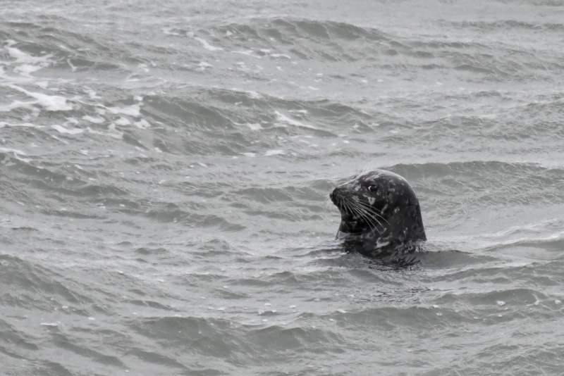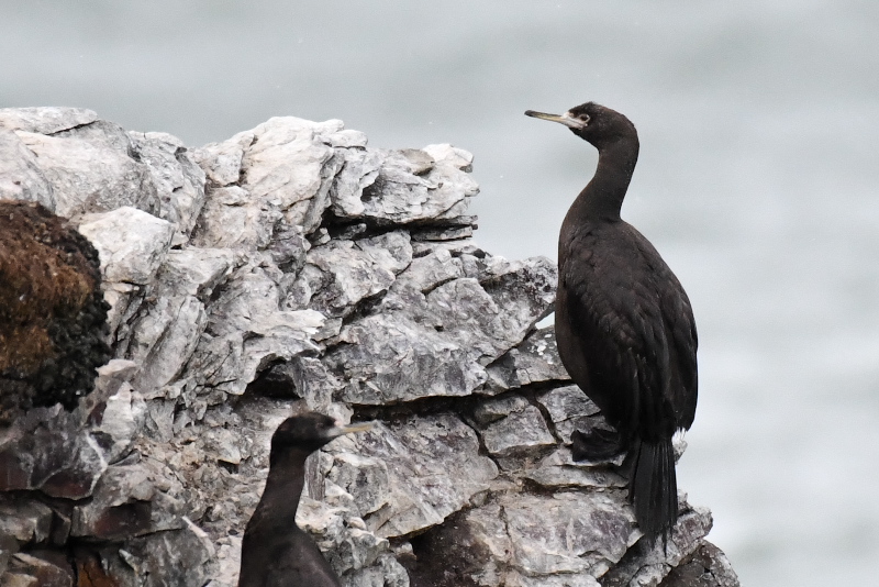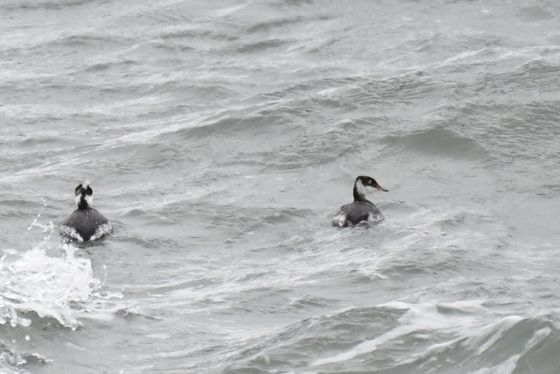 岬を訪ねたときには気にして探していたのですが、やっとチシマウガラスに出会いました。ヒメウには出会うのですが、いままでチシマウガラスとは縁がなかったので、うれしい出会いでした。 ハイドはまだ鍵がかかっていたので、短い時間の観察でしたが、ミミカイツブリ、ウミスズメ、シノリガモ、クロガモ、アザラシを見ました。 |