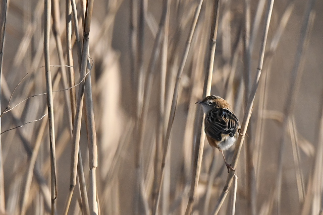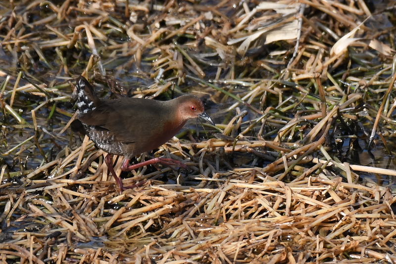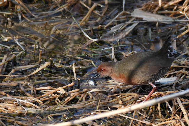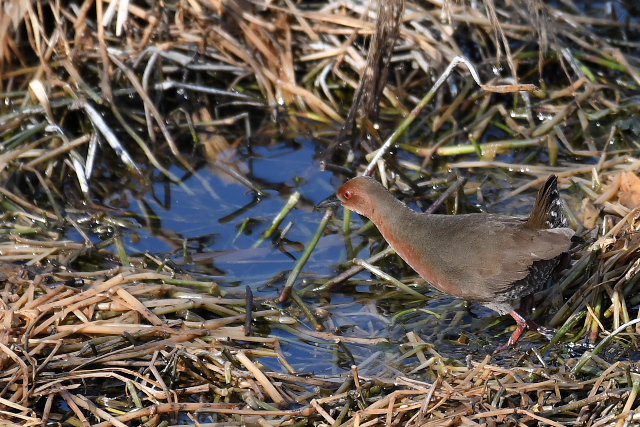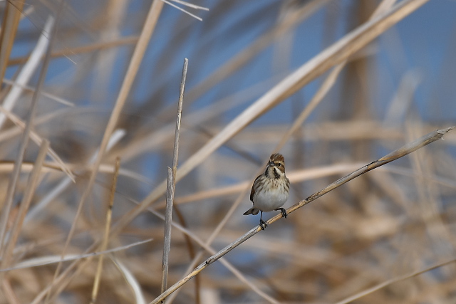 ヒクイナはしばらく姿を見せ、小魚をねらってうまく捕らえていました。ヒクイナをこんなにじっくり見たのは初めてでした。 今季オオジュリンを見ることはまれでしたので、この鳥との出会いもうれしかった。 |